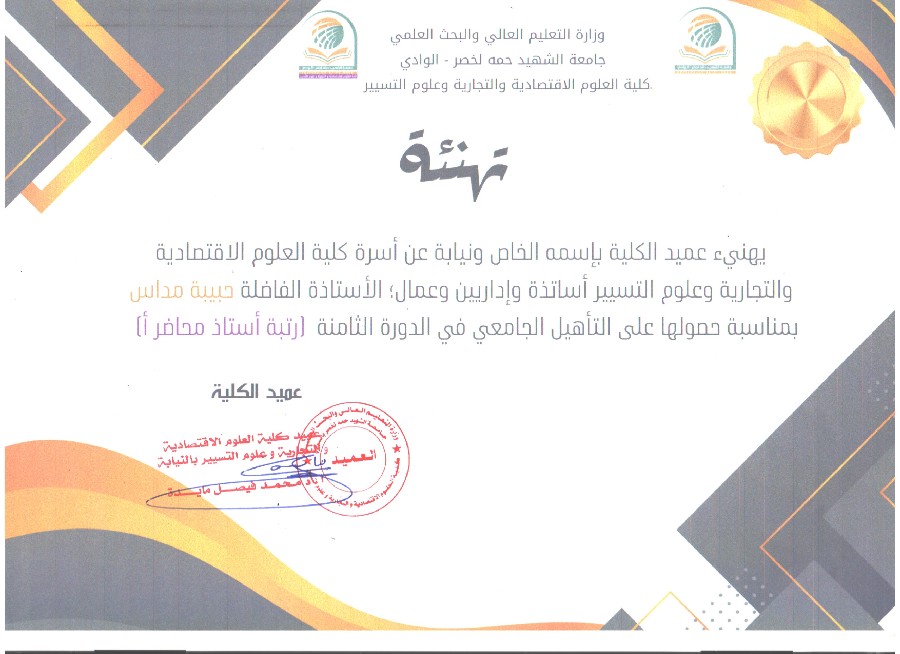 مناقشة مذكرة تخرج لمؤسسة ناشئة في اطار القرار الوزاري 1275 بالكلية
