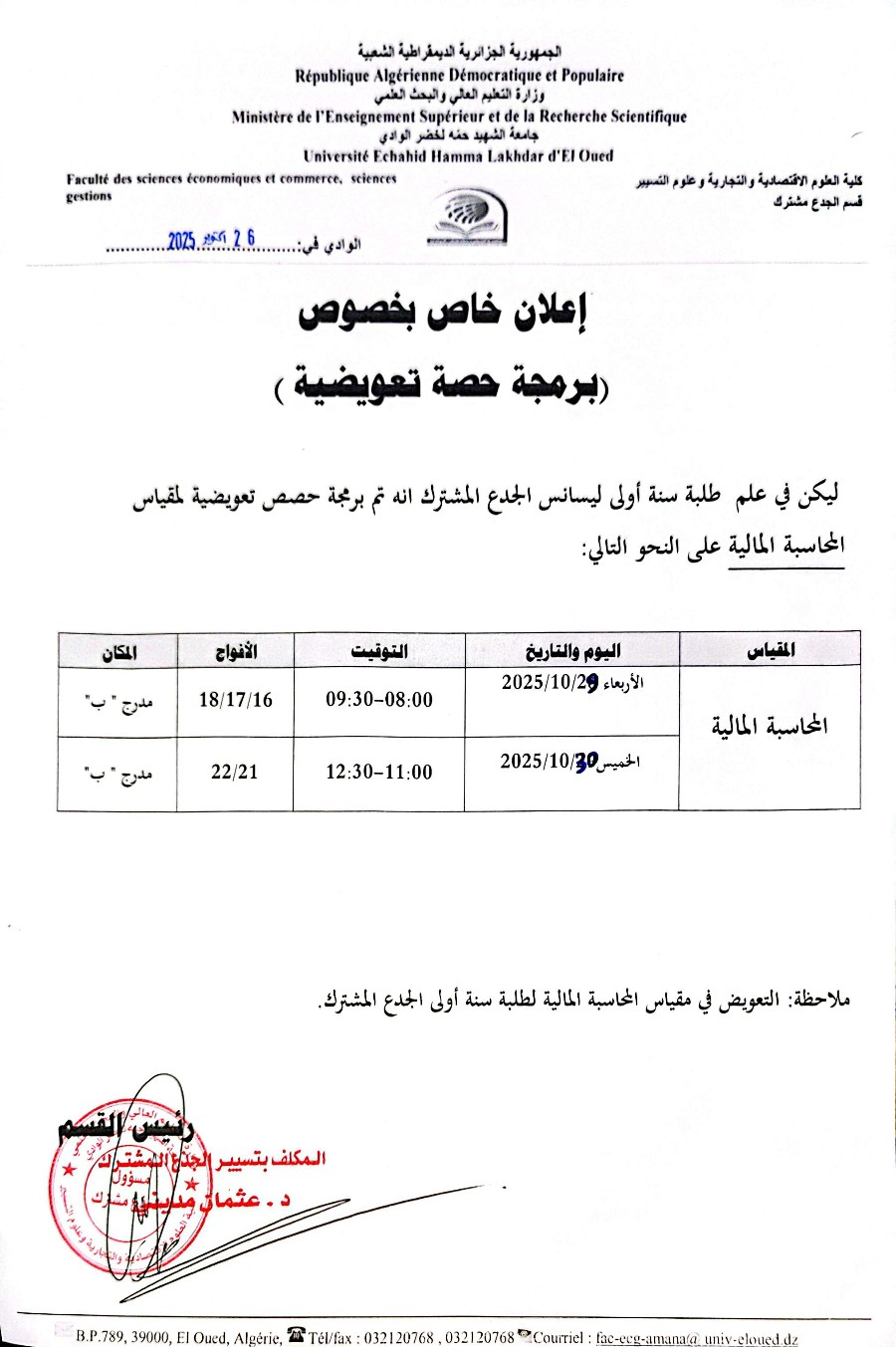 ب/خ برمجة حصص تعويضة لقسم جذع مشترك L M D