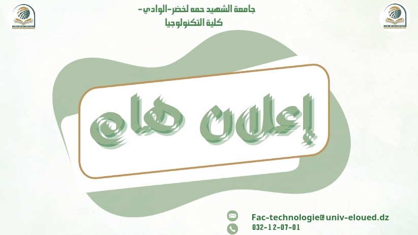 من إعداد وتقديم: الدكتور خشخوش عبد الرحمان يوم الاثنين 16 فيفري 2026 (09:00 - 14:00) بمقر مخبر التكنولوجيات الحديثة والتنمية المحلية الدعوة عامة للفئة المعنية، والحضور مهم للاستفادة من التوجيهات العلمية والمنهجية المقدمة خلال الورشة.