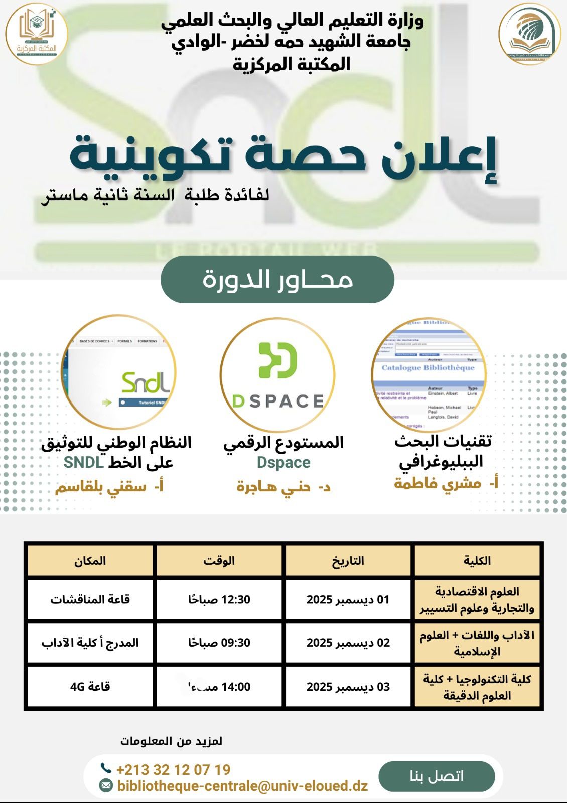 إعلان عن حصة تكوينية لفائدة طلبة سنة ثانية ماستر