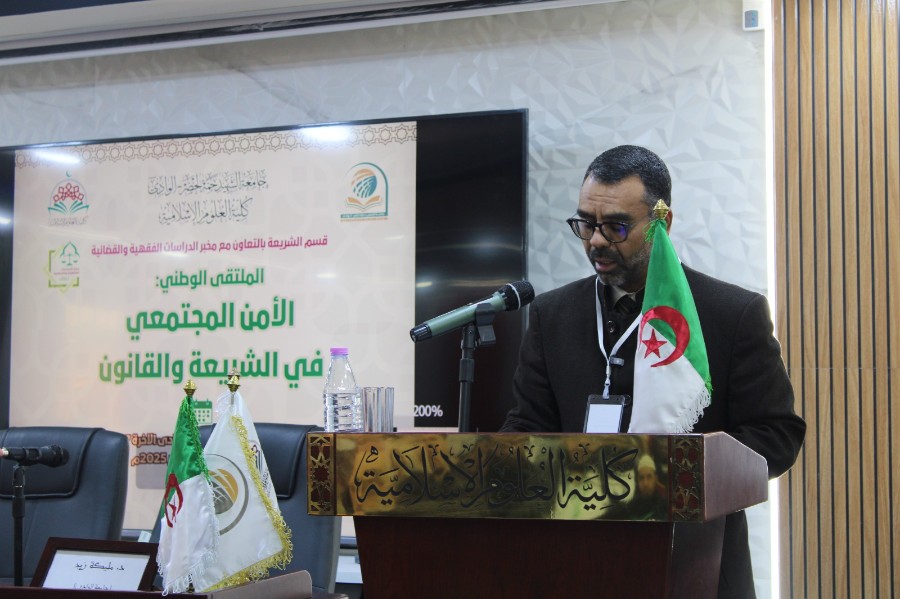 بتاريخ 12 - 13 جمادى الآخرة 1447 ه الموافق ل 4 - 3 ديسمبر 2025 انعقد الملتقى الوطني "الأمن المجتمعي في الشريعة والقانون" المنظم من طرف قسم الشريعة بالتعاون مع مخبر الدراسات الفقهية والقضائية لكلية العلوم الإسلامية بجامعة الشهيد حمه لخضر بالوادي، وبعد يومين من المداخلات والمناقشات الثرية خلصت لجنة التوصيات إلى ما يأتي: