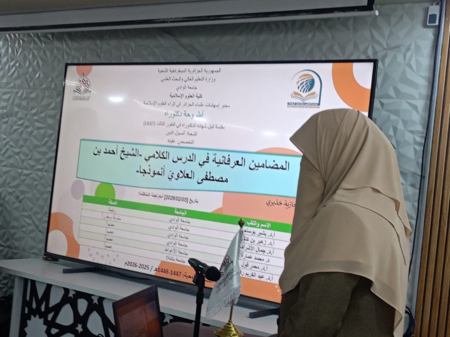 مناقشة أطروحة دكتوراه في العقيدة للباحثة: الجازية خذيري.
