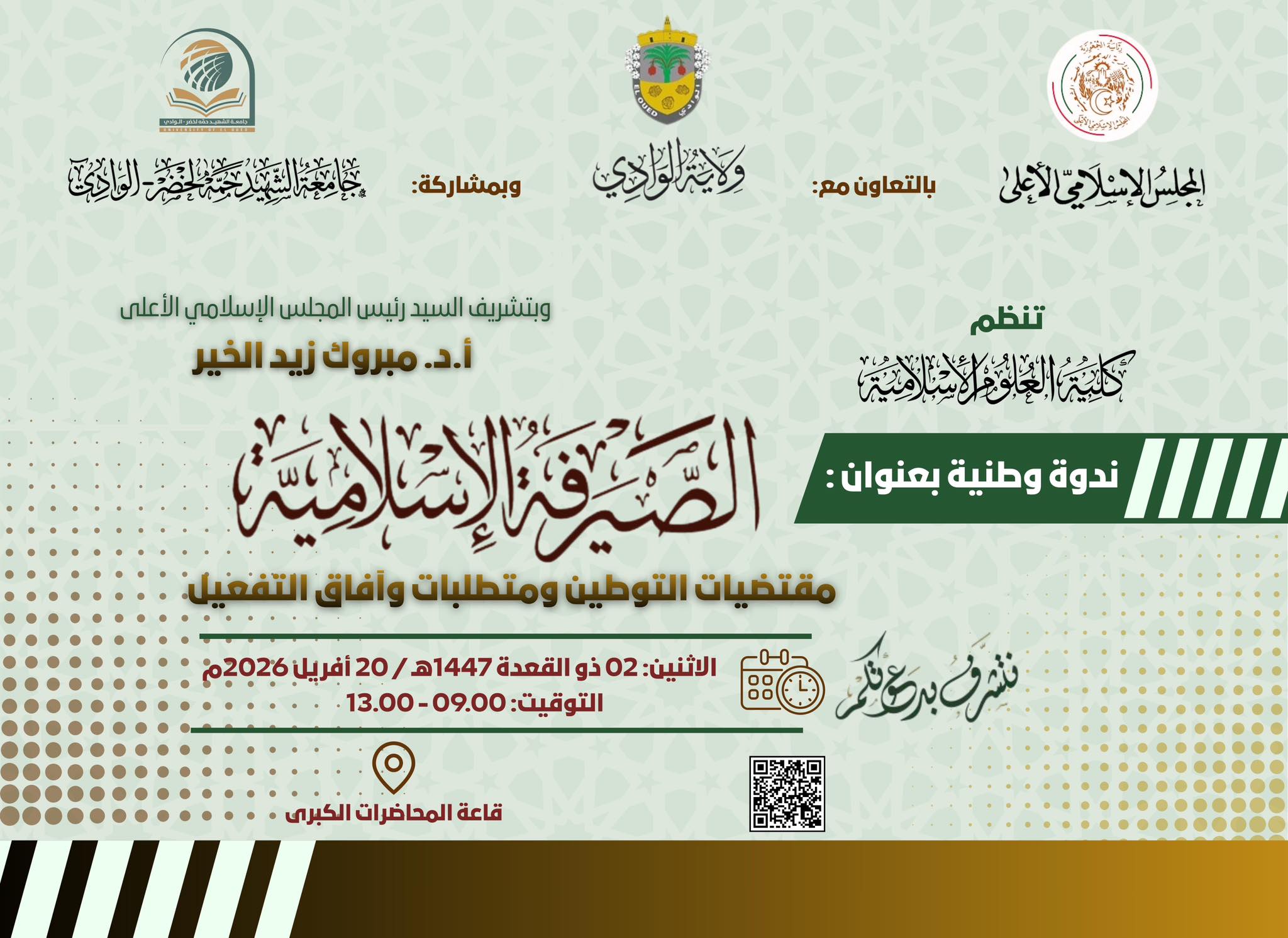 ندوة وطنية بعنوان *الصيرفة الإسلامية مقتضيات التوطين ومتطلبات وآفاق التفعيل*
