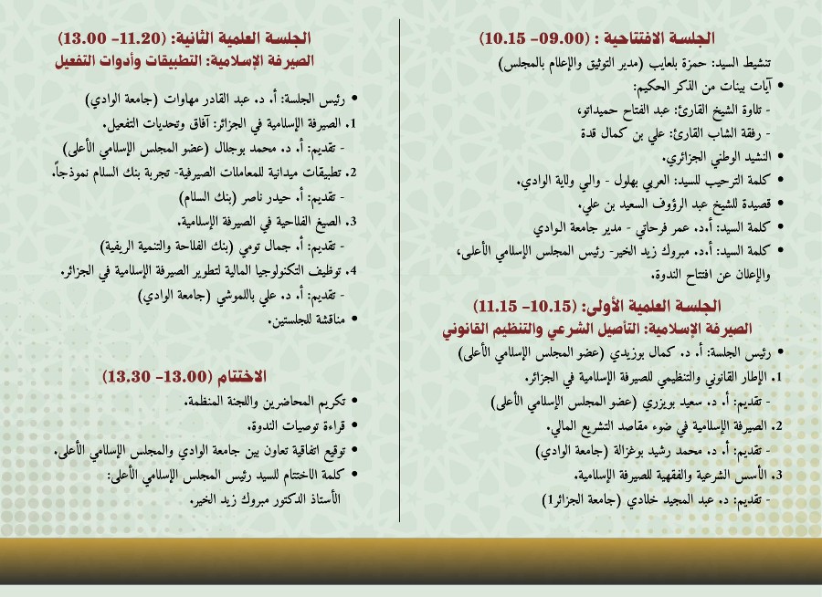 برنامج الندوة الوطنية: الصيرفة الإسلامية - مقتضيات التوطين ومتطلبات وآفاق التفعي