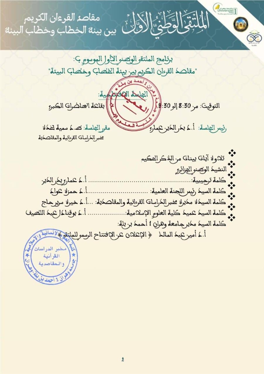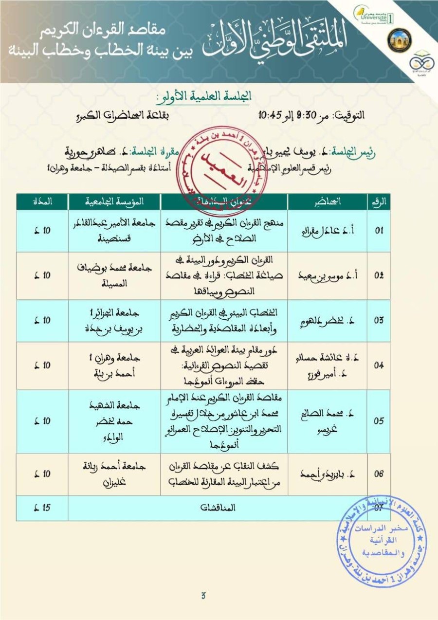 مشاركةد.م الصالح غريسي في ف م الوطني:م القرآن الكريم بين بيئةالخطاب وخطاب البيئة