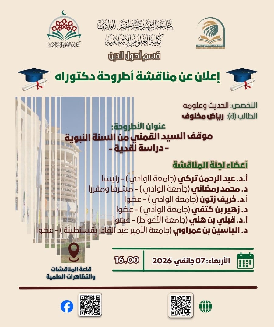 إعلان مناقشة أطروحة دكتوراه