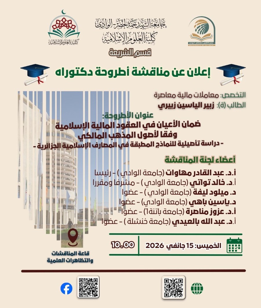 مناقشة أطروحة دكتوراه في المعاملات المالية المعاصرة