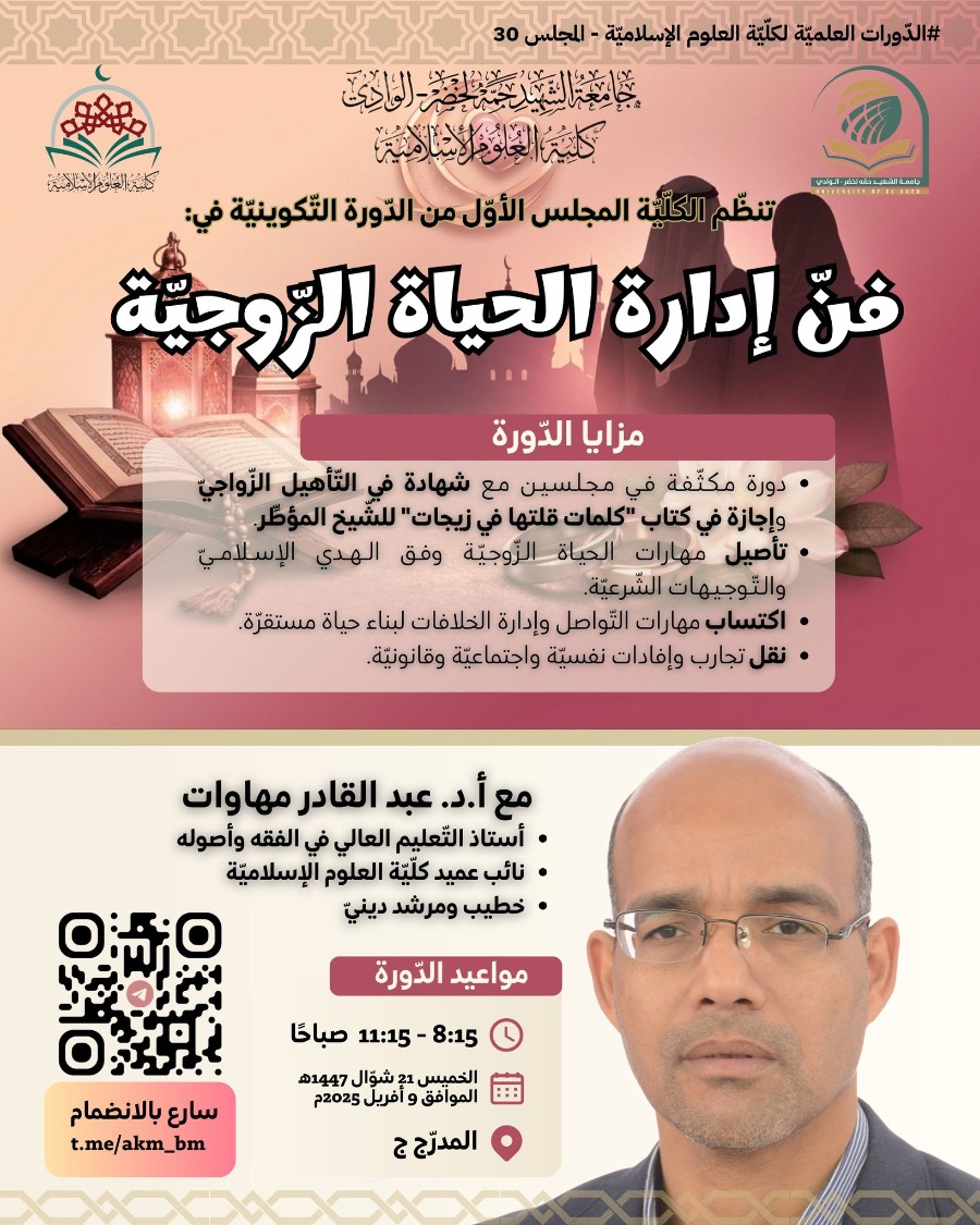 إعلان عن مناقشة أطروحة دكتوراه في الحديث وعلومه للباحث: لامين لضفار.