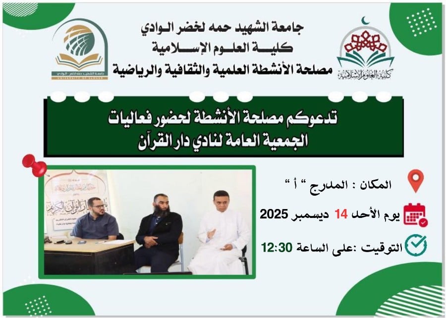 دعوة لجميع الطلبة للمشاركة في الجمعية العامة لنادي دار القرآن