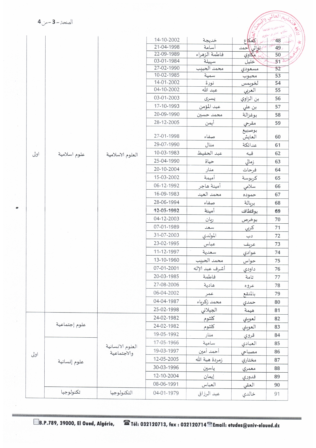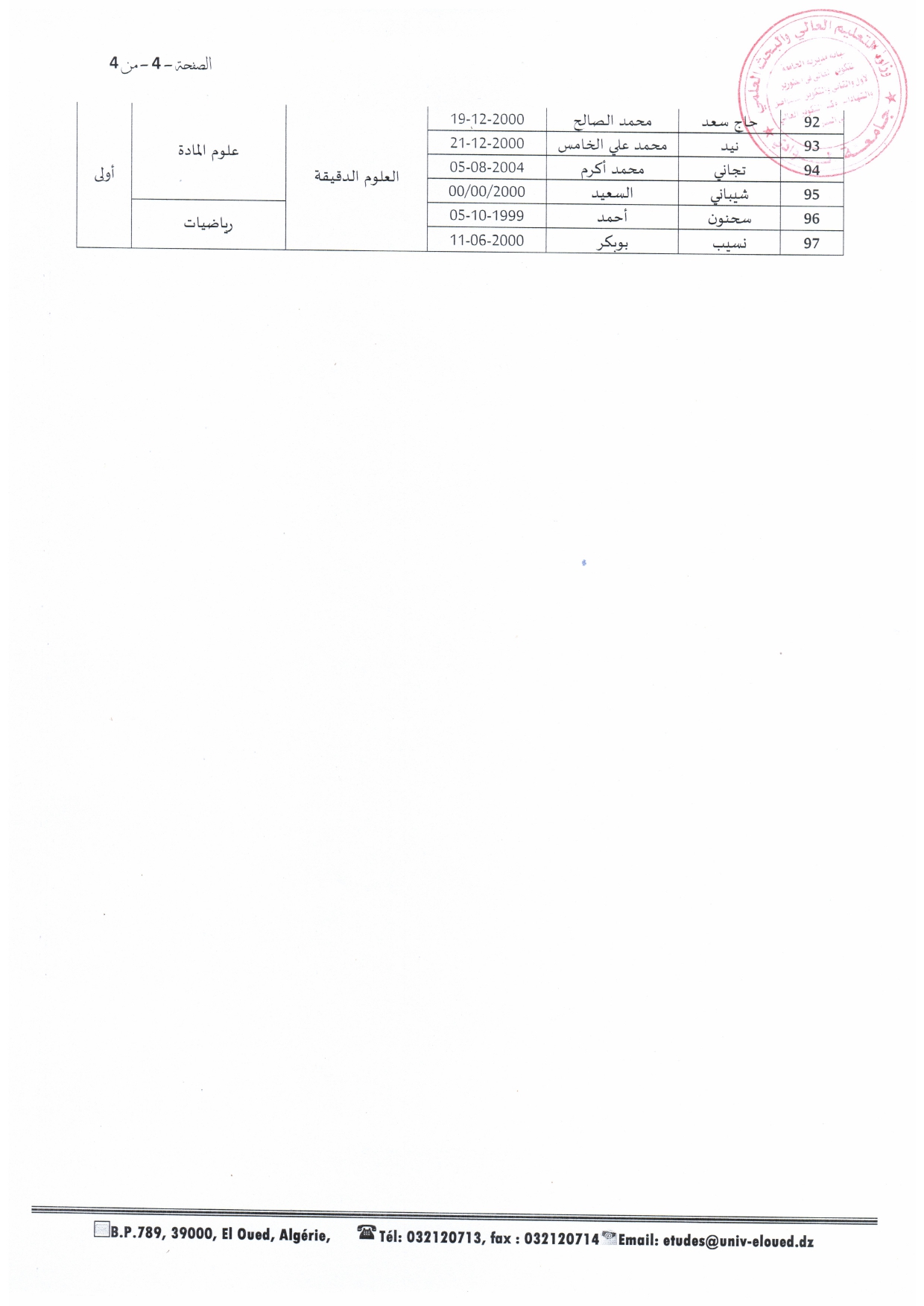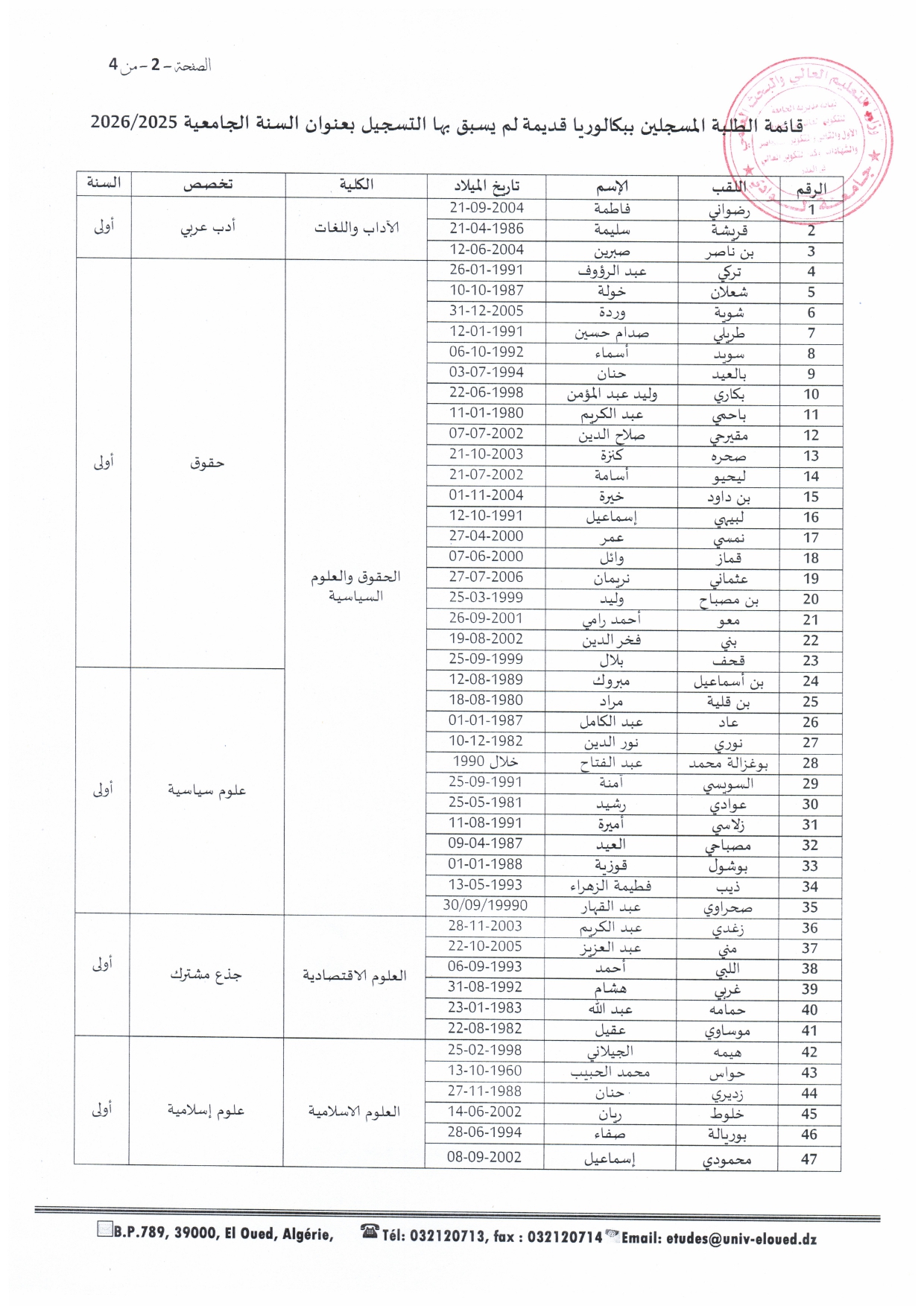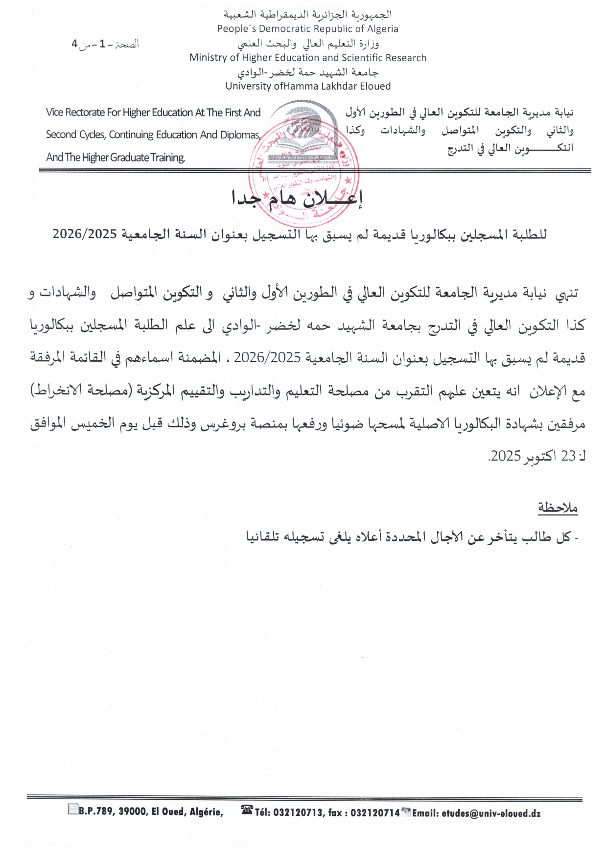 إعلان خاص بطلبة السّنة الأولى فئة 20% والثّانية ماستر - جميع التّخصّصات