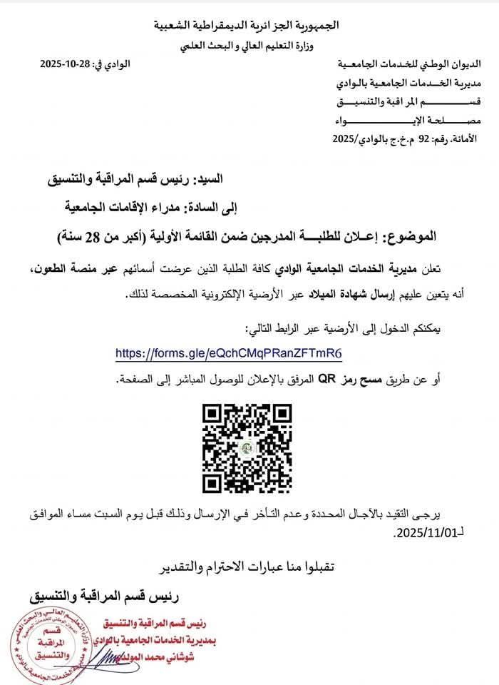إعلان خاصّ بممثلي الطّلبة في سائر السّنوات والتّخصّصات.