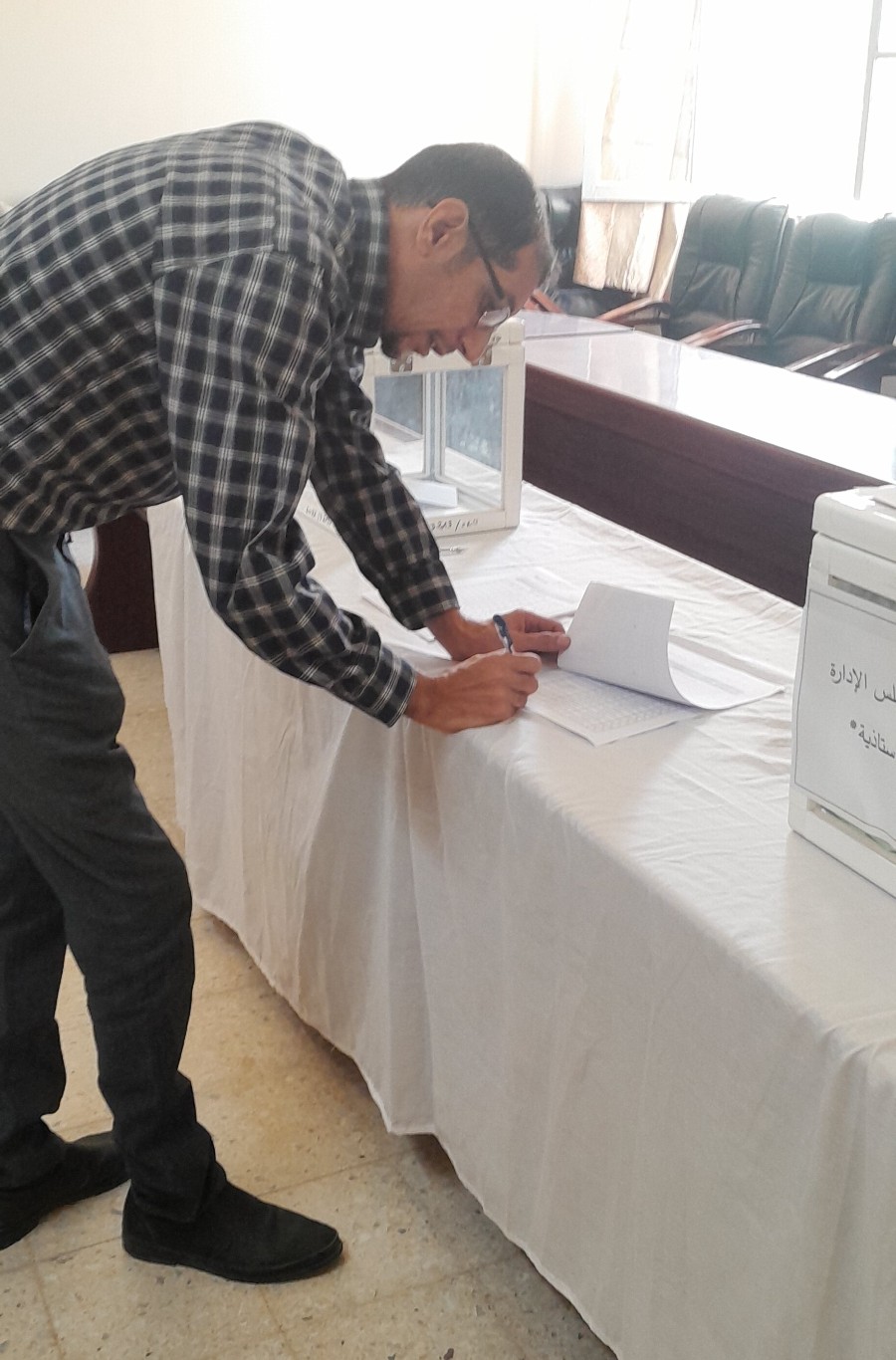 بتاريخ 03 نوفمبر سنة 2025 وعلى الساعة التاسعة صباح أشرف عميد الكلية البروفيسور عبد الوهاب منصور وبحضور كل من الأمين العام للكلية ورئيس مصلحة المستخدمين وممثل الاساتذة شرع في افتتاح عملية التصويت على الساعة 9.00 صباحا، حيث كان أول المصوتين الحاضرين للبدء في عملية التصويت نائب مدير الجامعة لما بعد التدرج والبحث العلمي الاستاذ الدكتور فرحات ارحومة حيث عبر عن صوته في الصندوق المخصص لفئة الاستاذية وبعدها توالت عملية التصويت من قبل الاساتذة والموظفين والتي شهدت اقبالا كبيرا من قبل موظفي الكلية ولقد تمت عملية التصويت لكل الفئات على الساعة 3.00 مساء و بعدها بدأت عملية فرز الأصوات حيث إنتهت على الساعة 4.00 مساء وبعدها تم تسليم المحاضر للإدارة المركزية.